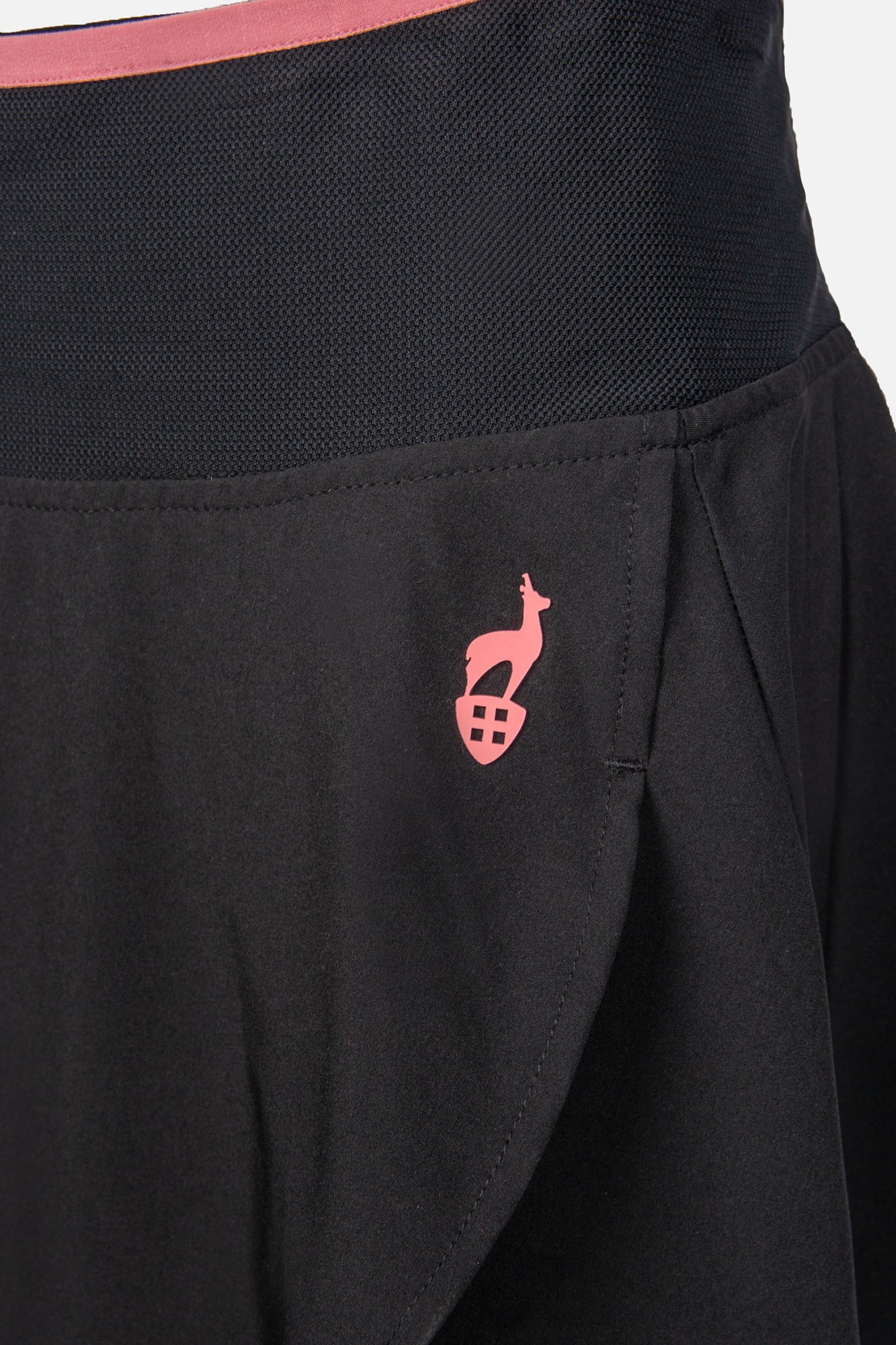I pantaloncini RUNNA da donna con gonnellino a portafoglio sono leggeri, traspiranti ed elasticizzati, perfetti per lo sport e il tempo libero.
